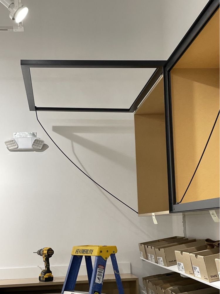 Testrite has manufactured a wide range of custom shelf covers with simple hinges, or more elegant stay open and soft close hinges. We've even built signage with gas springs!